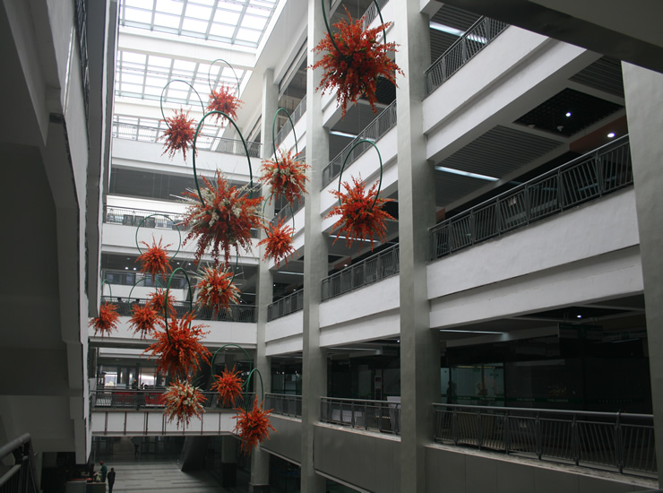 國(guó)際商貿(mào)城五區(qū)市場(chǎng)吸納了國(guó)際大型商業(yè)中心的先進(jìn)理念,配有電子商務(wù)系統(tǒng)、智能安全系統(tǒng)、物流短駁配送系統(tǒng)、金融服務(wù)系統(tǒng),中央空調(diào)、大型電子顯示屏、寬帶網(wǎng)絡(luò)、數(shù)據(jù)中心、環(huán)繞高架車(chē)道、大型停車(chē)場(chǎng)、雨水回收器、自動(dòng)天窗等配套設(shè)施一應(yīng)俱全,堪稱(chēng)集購(gòu)物、旅游、休閑為一體的國(guó)際性商務(wù)中心,是國(guó)內(nèi)現(xiàn)代化、國(guó)際化水品最高的全球小商品批發(fā)交易市場(chǎng)。